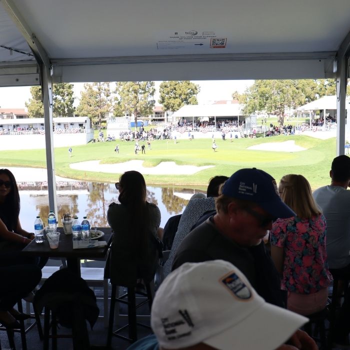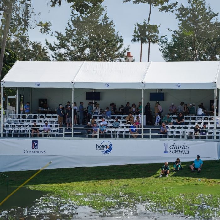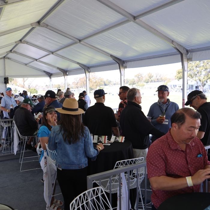 The Partners Club is a perfect option for sponsors who want to experience the amenities of a Hoag Classic hospitality venue on a smaller scale. Enjoy a festive atmosphere where you can entertain guests and network with other sponsors. This shared hospitality venue provides unparalleled viewing of the PGA TOUR Champions action throughout the day on the signature par-three 17th hole. The Partners Club includes food and beverage service with full bar, heating and air conditioning, cable television, Wi-Fi and security.