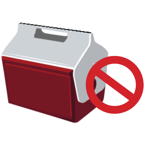 No beverages (patrons may not bring in or exit with beverages) or coolers