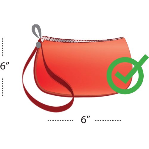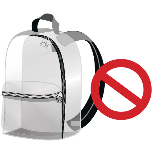 No clear plastic, vinyl, or other carry items larger than 12”x6”x12”