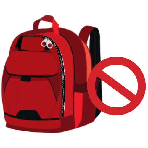 No bags larger than a small purse 6”x6” including carrying cases, backpacks, camera bags, or chair bags